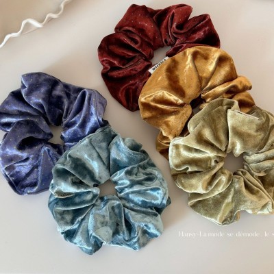 Women's Versatile Bun Hair Scrunchies Autumn Winter Velvet Polka Dot