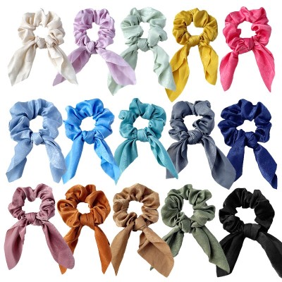 Women's Handmade Rabbit Ear Scrunchie Daily Hair Tie Solid Satin Bow