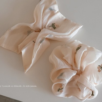 Women's Sweet Everyday Cloth Hair Tie Apricot Embroidered Floral