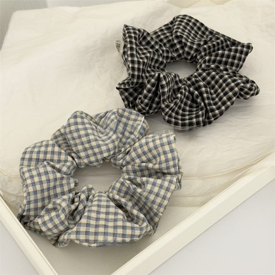 Women's Spring Retro Cloth Hair Tie Scrunchie Blue Black Plaid