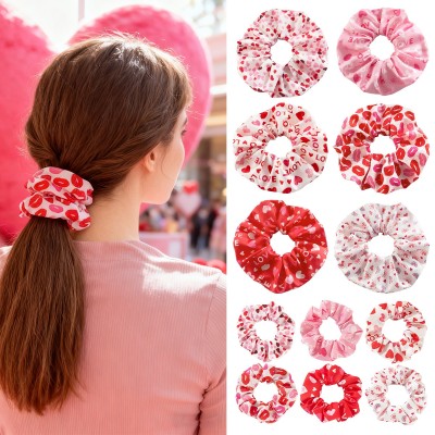 Women's Cloth Elastic Ponytail Hair Tie Red Pink Heart Lip Print