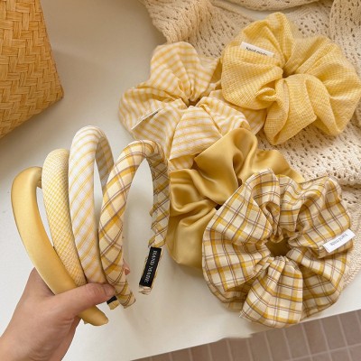 Women's Sweet Satin Hair Tie For Autumn And Winter Yellow Plaid