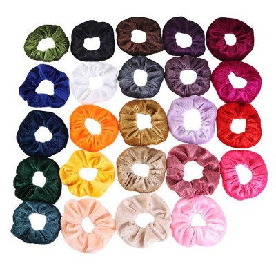 Ladies Winter Gold Velvet Bun Hair Scrunchies Ethnic Plaid Pattern